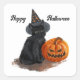 Cute, vintage picture of cat dressed up as a witch with a pumpkin, is featured on this Halloween sticker. With message, "Happy Halloween", makes this a great sticker for that special mailing, decorating, scrapbooking and more!