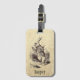 Vintage Alice in Wonderland's White Rabbit illustration on burlap texture background. Personalise this unique luggage tag with name or monogram.