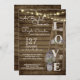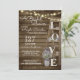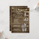 Vintage wooden ladder decorated with purple lavender and baby's breath. The word "love", bridal shower invitation with dark rustic barn wood and jar full of flowers. Hand script style text adds just a bit of whimsy to this absolutely beautiful and fun, rustic bridal shower invitation.