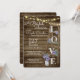 Vintage wooden ladder decorated with purple flowers and the word "love", bridal shower invitation with dark rustic barn wood and jar full of flowers. Hand script style text adds just a bit of whimsy to this absolutely beautiful and fun, rustic bridal shower invitation.