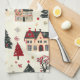 Festive vintage Christmas kitchen towel features a classic design of Christmas trees, cosy houses, and reindeer. It is perfect for adding a seasonal touch to your activity.