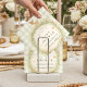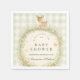 A soft woodland baby shower design featuring a delicate watercolor fawn standing above a floral forest wreath. Gentle greenery, tiny mushrooms, and wildflowers surround the center, while a soft sage gingham background and ribbon bow add a cozy countryside nursery feel. The vintage storybook illustration style and muted woodland palette create an elegant and whimsical design perfect for a nature-inspired celebration welcoming a new baby.