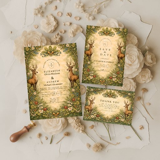 Vintage Woodland Deer Wedding Save The Date
