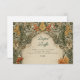 This baby shower design showcases a charming woodland mushroom scene framed by delicate florals and lush greenery, illustrated in a vintage storybook style. Soft earth tones, warm parchment textures, and detailed botanical elements create a cozy forest aesthetic with timeless, old-world appeal.