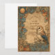 This baby shower design features a beautifully illustrated woodland owl perched among leafy branches and soft botanicals, inspired by vintage storybook and Arts & Crafts–style artwork. Warm parchment tones, muted blues, and earthy accents create a timeless forest aesthetic with gentle, old-world charm.