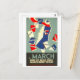 This postcard is a reproduction of a vintage WPA library poster reading, "In March, read the books you've always meant to read." It shows a woman on a windy day surrounded by books by Austen, Scott, Tolstoy, Twain, Dickens, and so on.