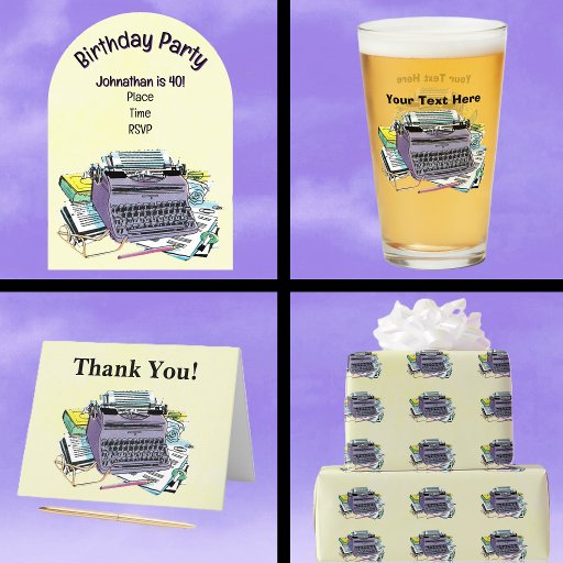 This is a vintage illustration image of an old fashioned typewriter and other writer’s tools including pencils, paper, glasses. See my store Art by MAR for matching products with this design.