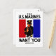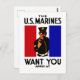 Fabulous, engaging recruitment poster for the U. S. Marines, dating to the First World War, using patriotic colours to great effect.