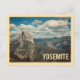 This stunning vintage-style postcard captures the majestic beauty of Yosemite National Park, featuring the iconic Half Dome rising above the valley floor. The classic, faded colours and retro filter give this image an authentic vintage travel poster feel, evoking the park's timeless grandeur. This card is perfect for sending a thoughtful message, commemorating a trip to the California wilderness, or framing as a small piece of National Park art. A great design for anyone who loves nature, hiking, camping, or the breathtaking scenery of the Sierra Nevada.
