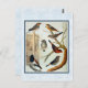 Postcard with a digitally cleaned and enhanced vintage image of male and female Zebra Finches, male and female African Zebra waxbills, male and female Strawberry Finches, and a Three-Coloured Finch. Colourful natural history illustration by W. Rutledge from The Illustrated Guide of Canaries and Other Cage-Birds, 1878. Framed and backed with a light blue parchment texture.