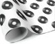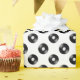 This music record themed wrapping paper features a repeating pattern of black and white vinyl records. Click "Customise It" to select a background colour.