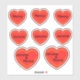 Red, three dimensional hearts with names. Three small hearts with 1st name, three small with second name. Two large hearts combine the two names together with "&"