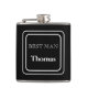 Vinyl wrapped flask is shown in a solid colour of black with a sample best man name.