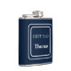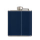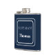 Vinyl wrapped flask is shown in a solid colour of navy blue with a sample best man name.