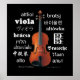 A beautiful Viola is surrounded by the word for viola in a myriad of different languages and an Alto Clef.