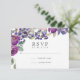 Elegant violet and plum floral wedding rsvp card with hues of sage green designed to be quickly and easily customised to your event specifics.