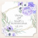 Greenery eucalyptus leaves, lilac & violet anemones and hydrangea flowers adorn these pretty paper coasters that are a perfect fit with matching paper plates and napkins. A gold geometric multi faceted terrarium style frame surrounded with floral bouquets. Design created for the BarefootBride™ by ©WhimsicalArtwork™ We created this template to make it easy for you to personalise with your own information. This is part of a coordinated wedding stationery suite.