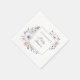 These beautiful baby shower napkins feature a faux gold geometric frame of watercolor blush, soft purple, and white flowers with plenty of botanical leaves and elegant light purple calligraphy.
