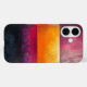 This abstract canvas is divided into horizontal bands of saturated violet, deep magenta, blazing orange, and midnight blue. The upper section blends rosy pink and plum tones, transitioning into a central strip of glowing tangerine and golden yellow before deepening into rich purple and navy. Textured brush marks, scratches, and layered paint create depth and tactile richness. Subtle hints of burgundy and indigo add complexity to the lower areas. The art style aligns with contemporary abstract expressionism and color field painting, emphasizing bold chromatic transitions and emotional resonance through layered pigment and gestural texture. The composition evokes a dramatic horizon illuminated by radiant, atmospheric light.