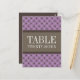 Trendy and chic Fancy Lattice Table Number Postcard featuring a stylish circle and diamond studded pattern over a vibrant purple background with a broad two-toned brown border. This elegant table card is perfect for a modern wedding. Easy to customise, simply add the appropriate table number(s) in the text field provided. Click "Customise It" to find more personalisation options.