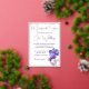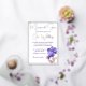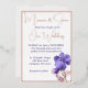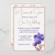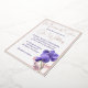 This is a 5' x 7" wedding invitation, shown in elegant white with floral artwork of violets and pale pink flowers. The invitation has rose gold foil accents and foil typeface. All foil on the invitation is genuine Italian foil, available in gold, silver, and rose gold. The reverse includes an 'Our Special day' motif, with complimenting ink colours.