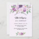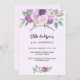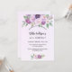 A violet, lavender watercolored background. Decorated with violet and purple watercolored flowers and greenery. Personalise and add your name and party details.