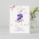 This is a 5' x 7" wedding Save The Date card is shown in elegant white with violet flowers and rose gold foil accents and foil typeface. It features a Tying The Knot design. All foil on the invitation is genuine Italian foil, available in gold, silver, and rose gold. The reverse includes the couple's first names and "Save The Date!" text. Message MineByDesign for assistance with custom orders.