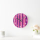 This wall clock has a design of vertical stripes of six shades of violet.