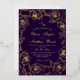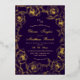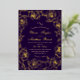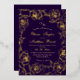 Modern stylish wedding invitation purple with gold dust on with a gold ink pour effect and modern calligraphy. Classy and elegant, simple and modern invitation.