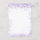 A modern, elegant wedding program, timeline. A white background decorated with violet, lavender coloured confetti. Personalise and add your names and wedding details. Black coloured letters. If you have more text it's possible to reduce the line space.
