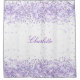 An elegant white background. Personalise and add your name. Decorated with violet, lavender coloured confetti. The name is written with a modern hand lettered style script.