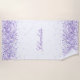 A white background. Personalise and add your name. Decorated with violet, lavender coloured confetti. The name is written with a modern hand lettered style script.
