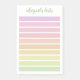 Personalised notes in white with colour boxes in pastel colours ranging from violet to pink to peach to yellow to lime for your lists or notes. Add your name in a lime green calligraphy script.