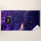 Violet purple abstract galaxy Custom Monogram Beach Towel