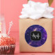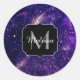 Violet purple abstract galaxy Custom Monogram Classic Round Sticker