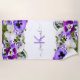 Two elegant borders of violet, lavender coloured, purple and white flowers, pansies on an elegant white background. Personalise and add your name and monogram letter, initial. Purple coloured letters. The name is written with a modern hand lettered style script with swashes. To keep the swashes only delete the sample name, leave the spaces or emoji's in front and after the name.