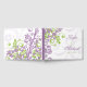 You can personalise the text on the cheerful lilac, lavender, or light violet purple, spring green (lime green, chartreuse), and white abstract floral wedding guest book. Bright lilac purple or amethyst purple and green is a pretty colour combination that works well for a wedding in the spring or summer. An elegant vintage floral wedding guestbook in purple and green.