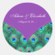 Elegant emerald green, royal blue and teal peacock feathers wedding favour labels.