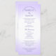 Elegant violet wedding program card is two sided with ceremony details on front and wedding party participants on the back.