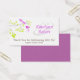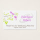 Use this set of business cards with personalisation as tags for your wedding favours to thank your guest for attending - simply punch a hole in the end and attach to your favours with matching ribbon. It is an elegant and romantic design features two violet purple birds in a delicate tree branch with lime green leaves. The Bride & Groom's first names are to the right and written in purple ink to match the leaves. Along the botton edge are the words 'thank you for celebrating with us' and the wedding date. The reverse side is a solid purple to match.