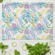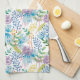 A beautiful rose garden tea towel with violet and blue bold flowers. Classic and elegant for an English tea or elegant cottgecore vibe in the kitchen.