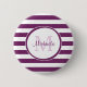 Violet Rugby Stripes With Chic Monogram and Name 6 Cm Round Badge