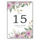Garden chic table number cards feature top and bottom borders of watercolor roses and lilacs in shades of pale purple and lavender, accented with green botanical foliage. Personalize with your table number, event date and additional custom text. Design repeats on reverse side. Coordinates with our Violet & Sage floral wedding invitation suite.