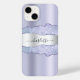 Violet, lavender coloured and faux silver agate, marble stone print as background Personalise and add your name. The name is written with a modern hand lettered style script.