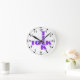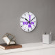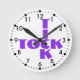 This lightweight acrylic wall clock face is modernly designed with the violet words "Tick Tock" in a crossword puzzle style design. The design includes an outer ring of black elements and an inner ring of black numbers. Be sure to check out the smaller 8" diameter.