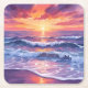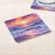 Violet Tide | Purple Sunset Ocean Waves Painted Square Paper Coaster