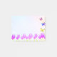 Violet tulip flowers and colourful butterflies on light blue and pink shades Post-It Notes.