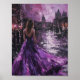 "Violet Vista: An Enchanted Evening in Venice" is an evocative painting that transports the viewer to a twilight-drenched Venice, as seen through the graceful poise of a woman adorned in a flowing purple dress. Her back to the viewer, she overlooks the historic cityscape, with its majestic domes and spires rising against the evening sky. The painting exudes a sense of romantic wanderlust, with the rich purples and deep blues creating a mood of mystical allure.