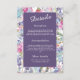 This wedding enclosure card comes in different sizes, shapes and papers. It is customisable with your reception, accomodation, details, monograms and other backgrounds. It shows a harmonious blend of floral colourful watercolor wildflowers and greenery. The minimal violet, lilac overlay is for your customisation.