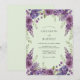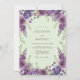 This design showcases a vibrant array of violet purple roses and cascading lilac clusters over a pale mint green background. Whimsical watercolor strokes and detailed leafy foliage create a romantic botanical arrangement. The soft colour palette and airy floral elements evoke a fresh and elegant atmosphere for a seasonal spring event.